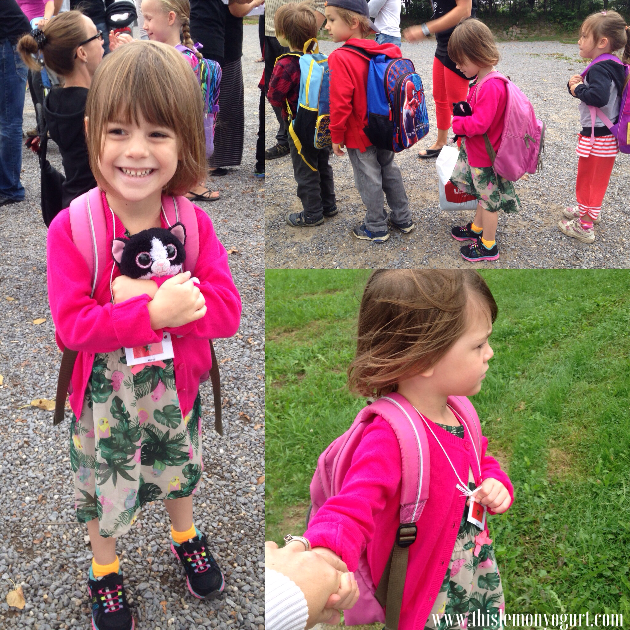 And Fiona headed off to première année with a smile. (Yes, first grade again. The age cutoff here is Sept 30 and they felt with that plus the language barrier she’d do well to repeat grade 1, and I do not disagree.) She was much more nervous than her little sister was this morning on the way to school, but once we got there and found her teacher and she lined up with her class she gained back some courage, and she flashed me that Fiona grin as they went in.